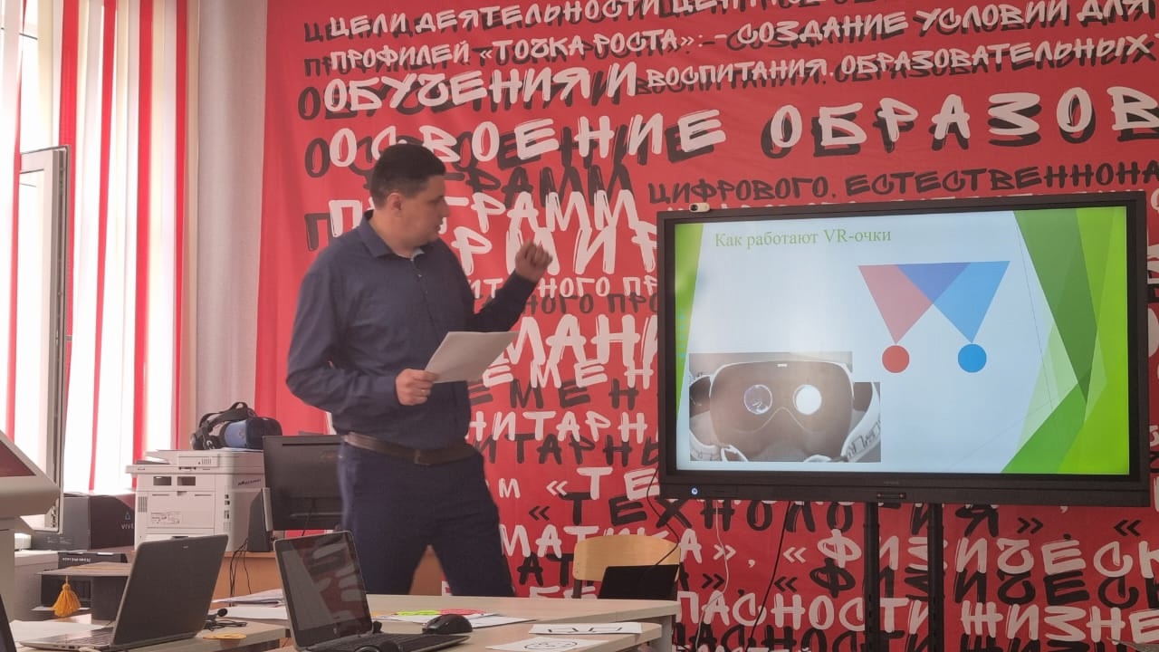 - Кузнецов Владимир Аркадьевич, учитель средней школы №2, познакомил участников с современным оборудованием Центра "Точка Роста", которое используется в образовательном процессе.