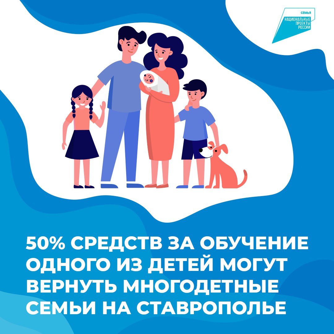 Об этом рассказал глава края Владимир Владимиров в своих официальных аккаунтах в социальных сетях. Cемьи с тремя и более детьми могут получить компенсацию в размере 50% стоимости обучения на одного из детей до 23 лет в любом отечественном вузе или учреждении среднего профессионального образования. Для того, чтобы воспользоваться поддержкой, нужно обратиться в органы соцзащиты по месту жительства. - Сегодня в крае более 50 тысяч семей имеют статус многодетных. В них воспитывается свыше 170 тысяч детей. Этот показатель растет с каждым годом. Поэтому перечень мер поддержки, адресованных большим и дружным семьям, расширяем, – отметил Владимир Владимиров