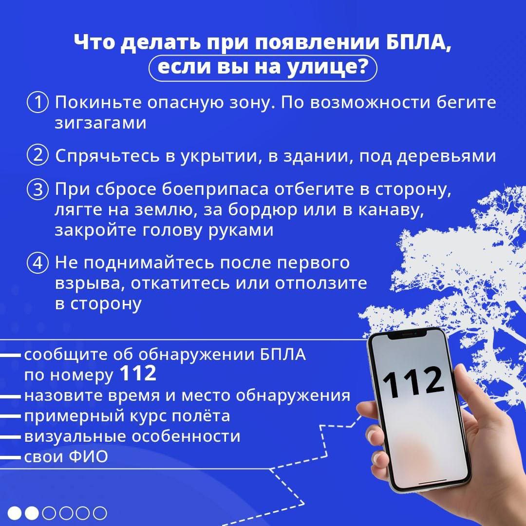 ❗️если вы сделали фотографии или видеозаписи БПЛА, передайте их сотрудникам полиции. Но ни в коем случае не распространяйте видео и фотоматериалы в социальных сетях или сети Интернет - это может помочь противнику выполнить корректировку и повторить атаку