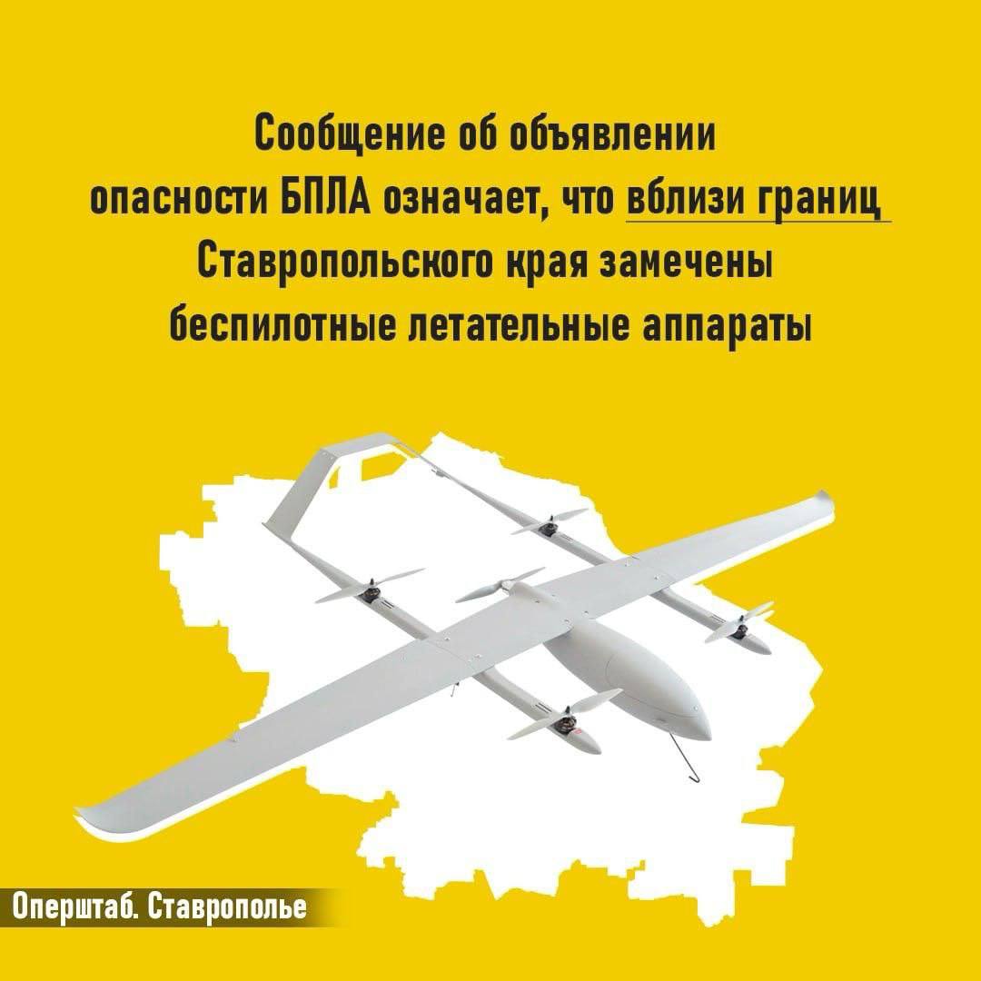 В регионе объявлена беспилотная опасность - что это значит и как действовать. Если вы получили такое сообщение, значит БПЛА приблизились к границам Ставропольского края.