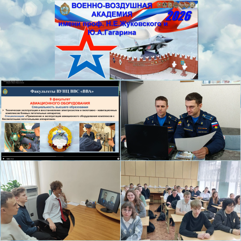 Сегодня Воронежская военно-воздушная академия имени профессора Н. Е. Жуковского и Ю. А. Гагарина распахнула свои двери для юношей гимназии №1 г.Новоалександровск и средней школы №2 ст.Григорополисская, проведя для них масштабное профориентационное онлайн-мероприятие.