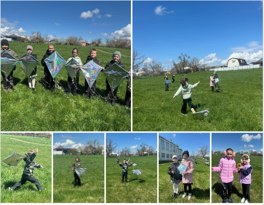 Под руководством советника директора по воспитанию и взаимодействию с детскими общественными объединениями Л. В. Чугуевой, ребята с восторгом запускали в небо воздушных змеев. Сами змеи были изготовлены учащимися старших классов под руководством учителя технологии Н. В. Мерзликиной.