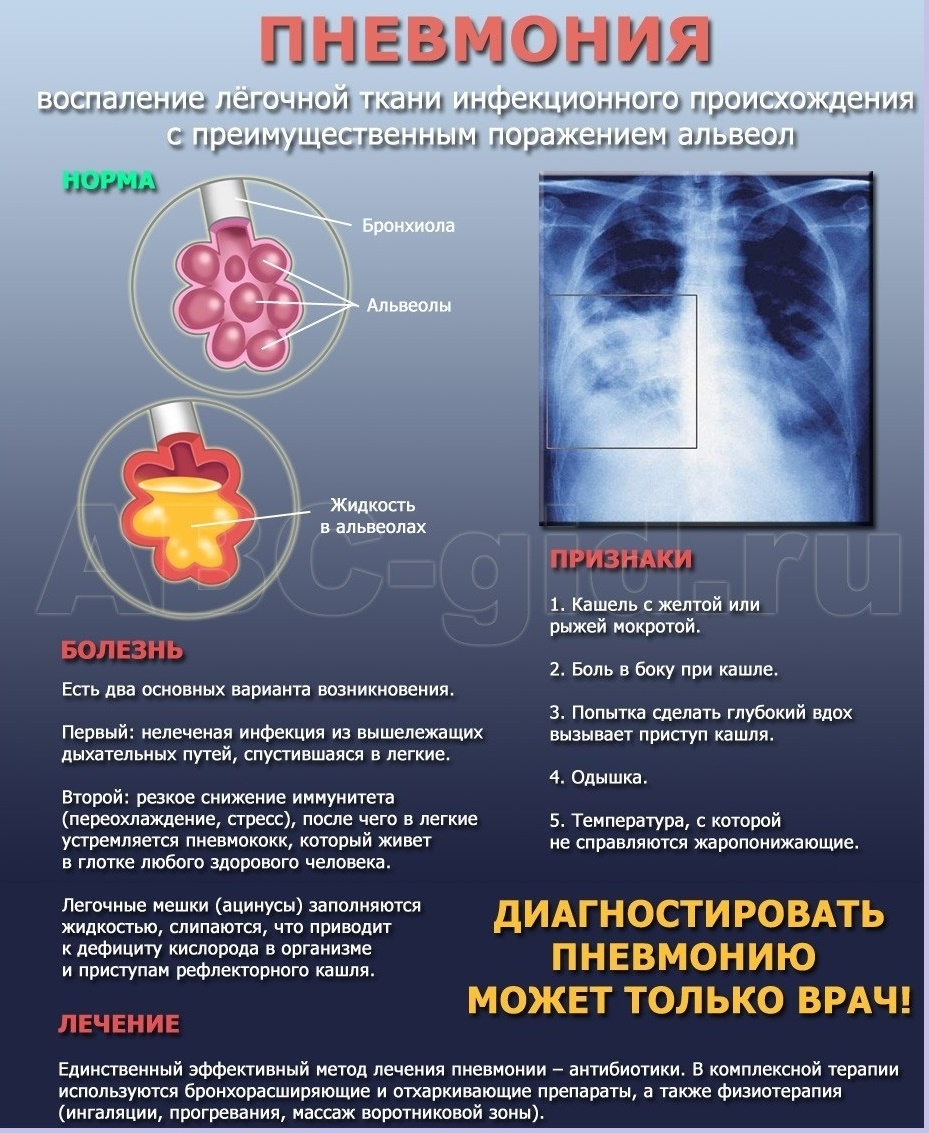 • гипостатическая пневмония – наблюдается у пациентов, которые длительно находятся в горизонтальном положении;